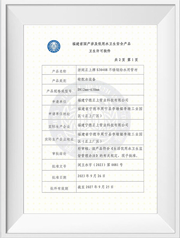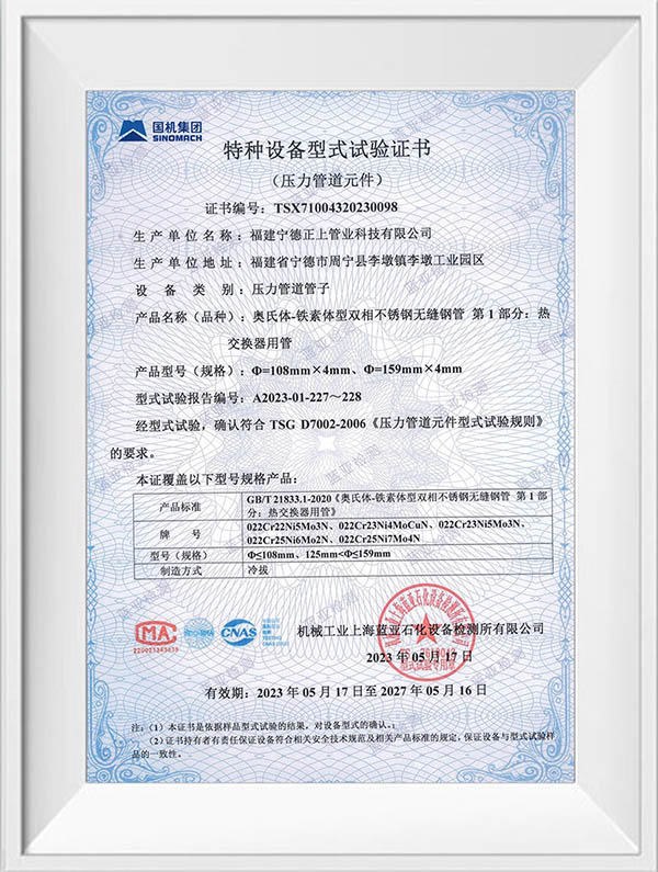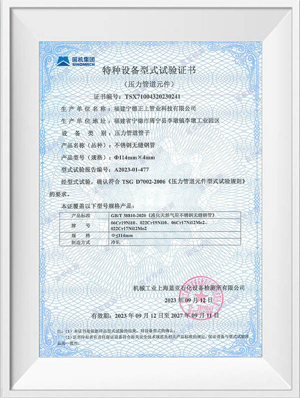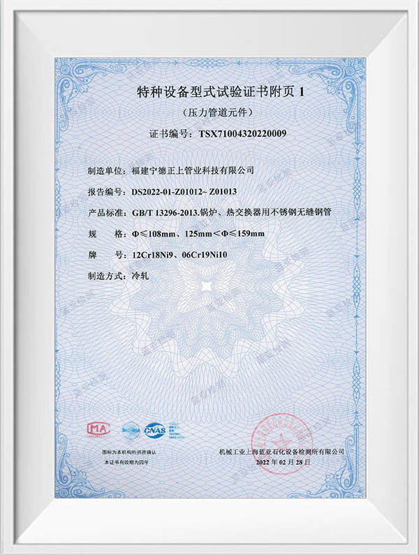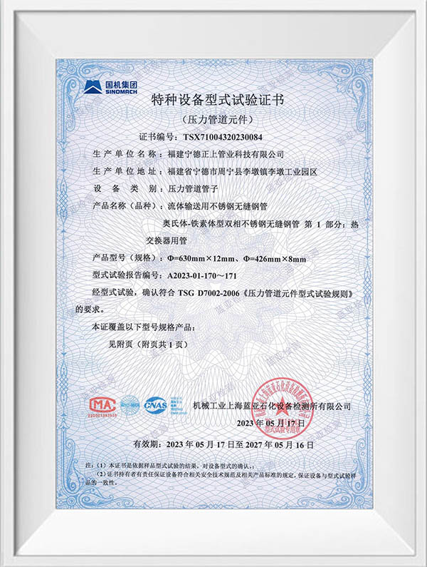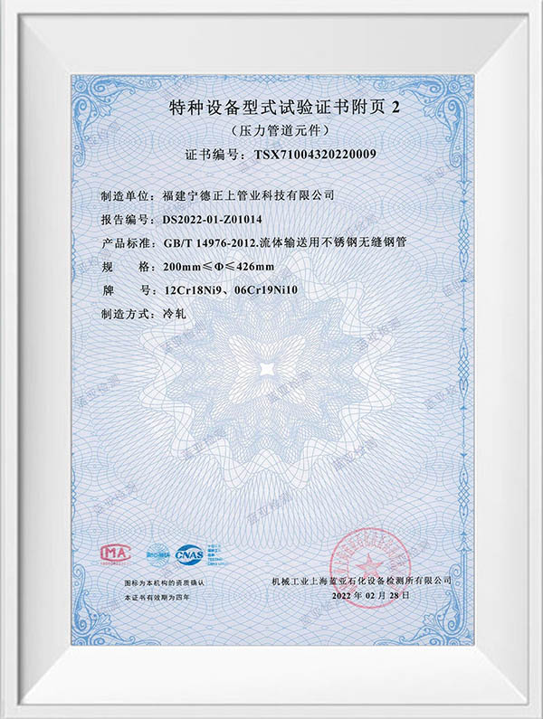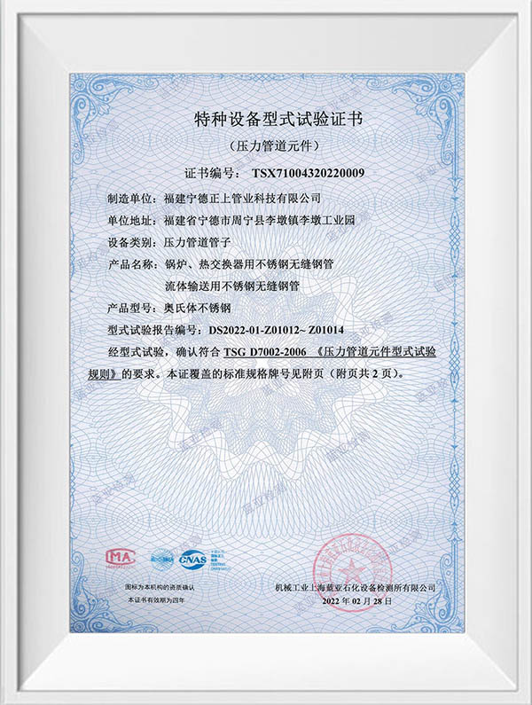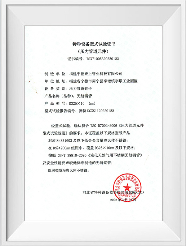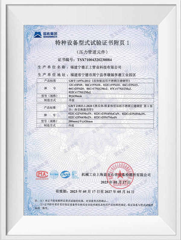 福建宁德正上管业科技有限公司是一家专业从事不锈钢管道系列产品生产的现代化企业。公司创建于2004年,生产基地位于福建省宁德市周宁县李墩工业园区,年产不锈钢管30000吨以上,在浙江温州、四川成都、重庆设有大型仓储及销售中心,现有员工150余人,年产值达5亿元以上。公司技术力量雄厚,生产设备先进,拥有全自动制管线50余条,LD30 型至LD280型冷轧机10余台,大型自动固溶退火炉3台,各型号拉床20余台,0830MM 拉床最大拉力可达1000吨,矫直及车床设备50余台,智能化管件焊接生产线30余条,管件成型机12台。可生产全规格尺寸标准产品,定尺长度最长可达15米。产品检验与试验设备有光谱材质分析仪、金相仪、碳硫分析仪、在线涡流探伤仪、扩口及压扁试验机、水压气压试验机、拉伸试验机,盐雾试验机,振动试验机等先进的设备及检测方法,以确保产品的优良品质,公司产品已通过ISO9001质量管理体系、ISO014001环境管理体系、ISO45001职业健康安全管理体系认证,并获得TS压力管道元件证书、涉水卫生许可批件及多项技术专利。公司主要经营产品有:不锈钢无缝管道系列,不锈钢工业焊管系列,不锈钢薄壁管道系列、不锈钢法兰管件系列及不锈钢型材系列,材质涵盖s32168、s30408、s316L、s30403、s31008、2205、2507等,可满足ASTM A213 A269 A312 TP304 TP304L TP316 TP316L TP321,SUS 304 316 等国际质最标准,品质创造品牌,正上用最先进的技术工艺结合多年的制管经验,研发生产出的不锈钢产品广泛应用于水利水务建设、燃气输送、石油化工、船舶航天、医药环保、工程建筑、机械加工等行业,正上管业坚持以优取胜、以信求客、以质长存、以技图宏为宗旨,通过集生产、销售、施工服务一体化,致力为广大客户提供优质的不锈钢产品和完善的服务。